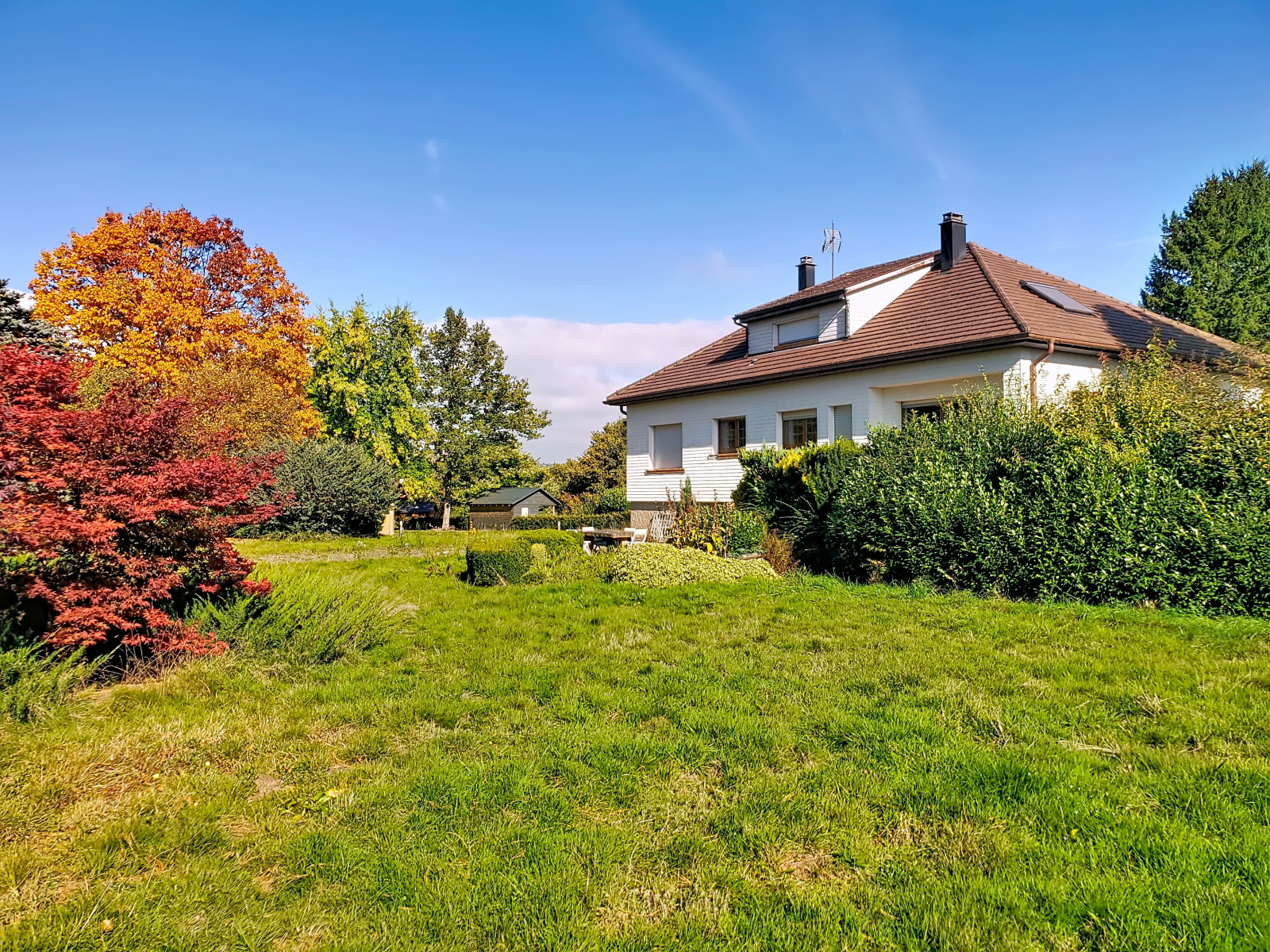 L'ensemble se trouve sur un vaste terrain entièrement plat et arboré de plus de 35 ares avec une deuxième terrasse sans vis à vis, un petit bassin et un cabanon de jardin.