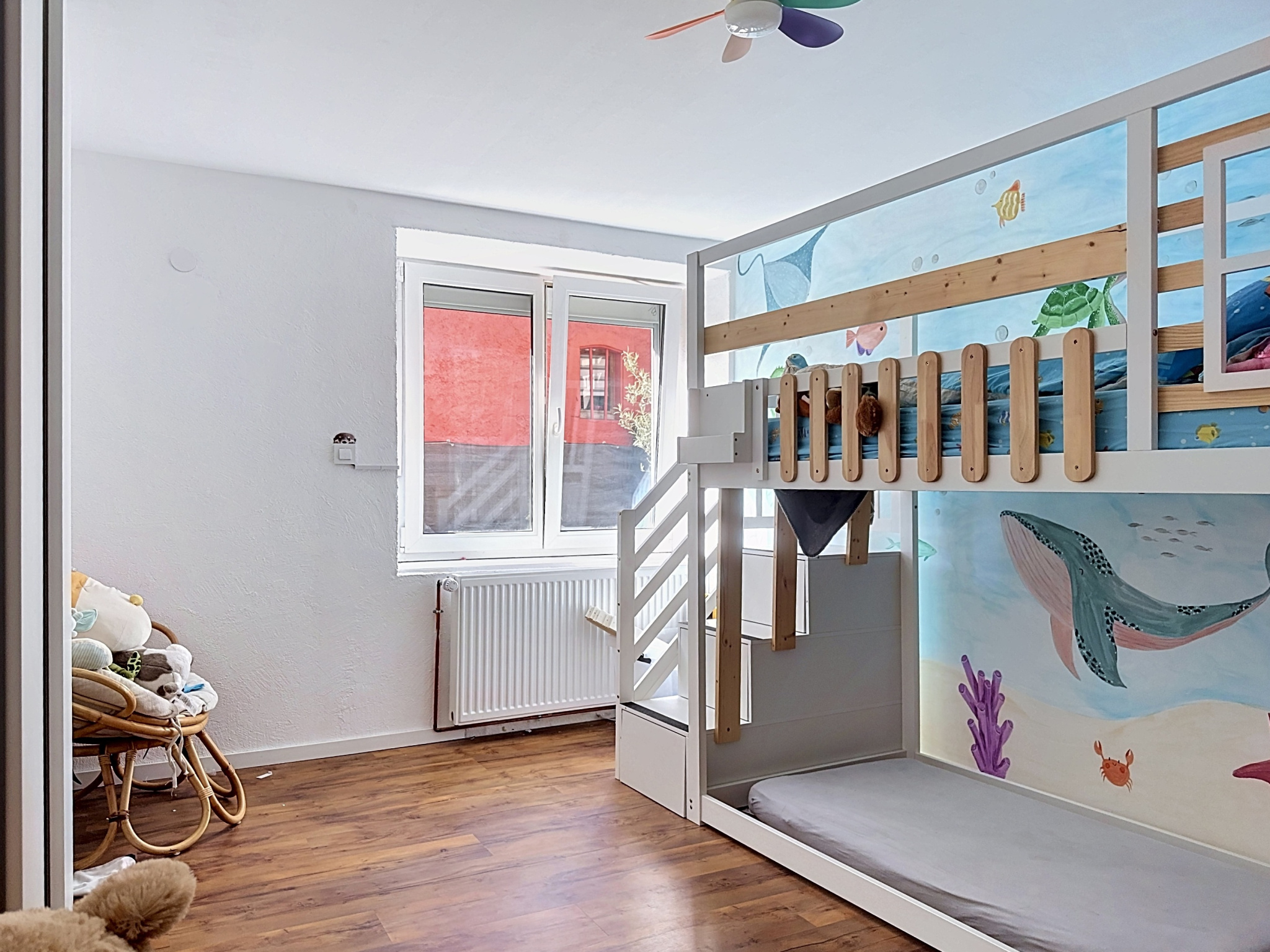 À l’étage, une mezzanine lumineuse offre un espace idéal selon vos besoins (chambre supplémentaire, bureau, salle de sport...).