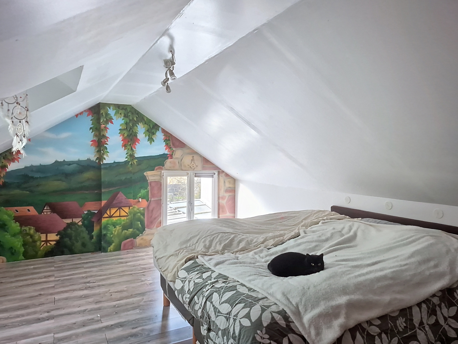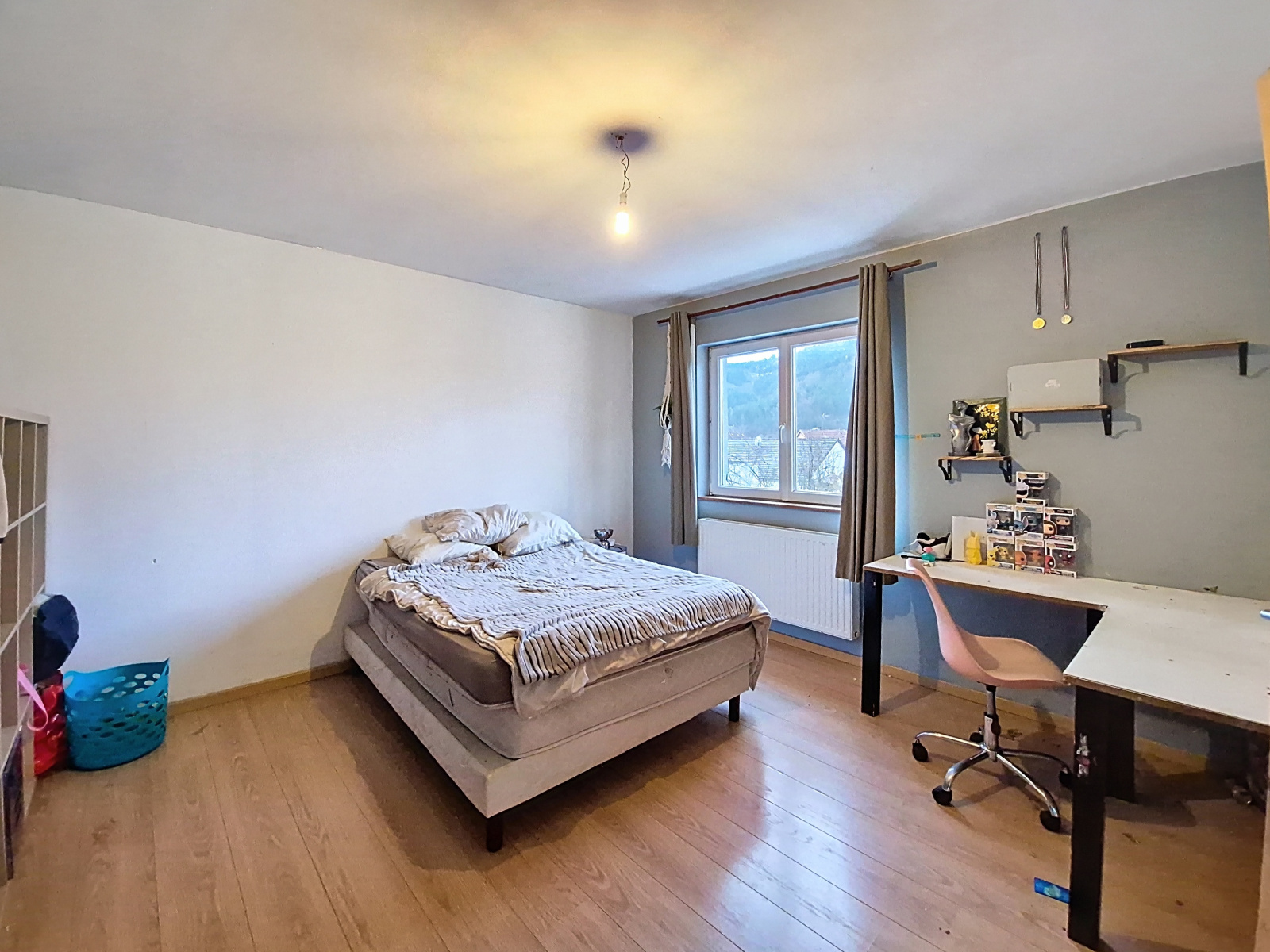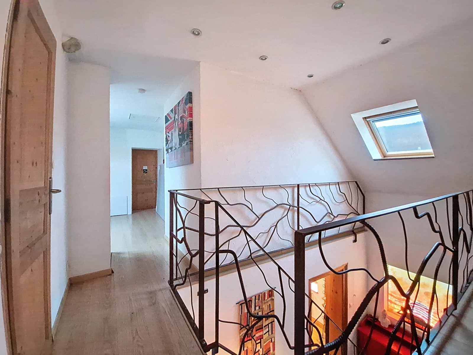 À l’étage, l’espace nuit offre quatre chambres, dont deux de moins de 9 m² habitables, une salle d’eau avec WC, ainsi qu’un vaste palier pouvant accueillir un espace bureau ou détente.